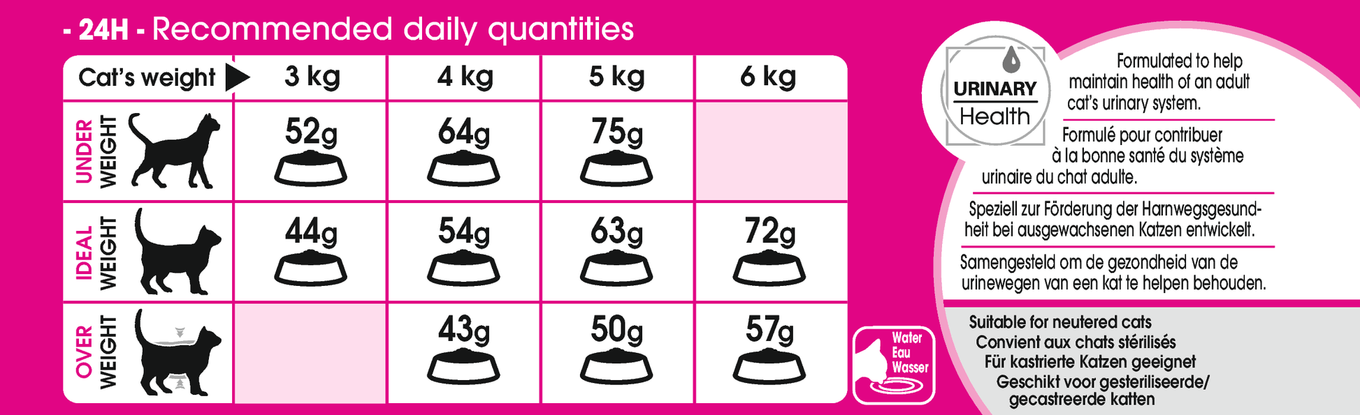 - Näringsämnen som bidrar till att stödja och bibehålla den vuxna kattens urinvägshälsa.