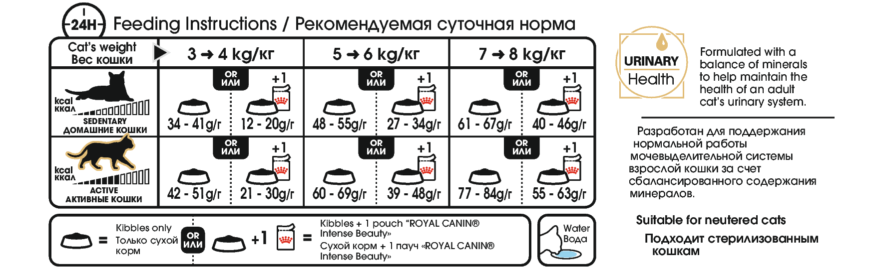 | Hög aktivitet | 42-51 g (1 pouch +21-30 g) | 60-69 g (1 pouch + 39-48 g) | 77-84 g (1 pouch + 55-63 g) |