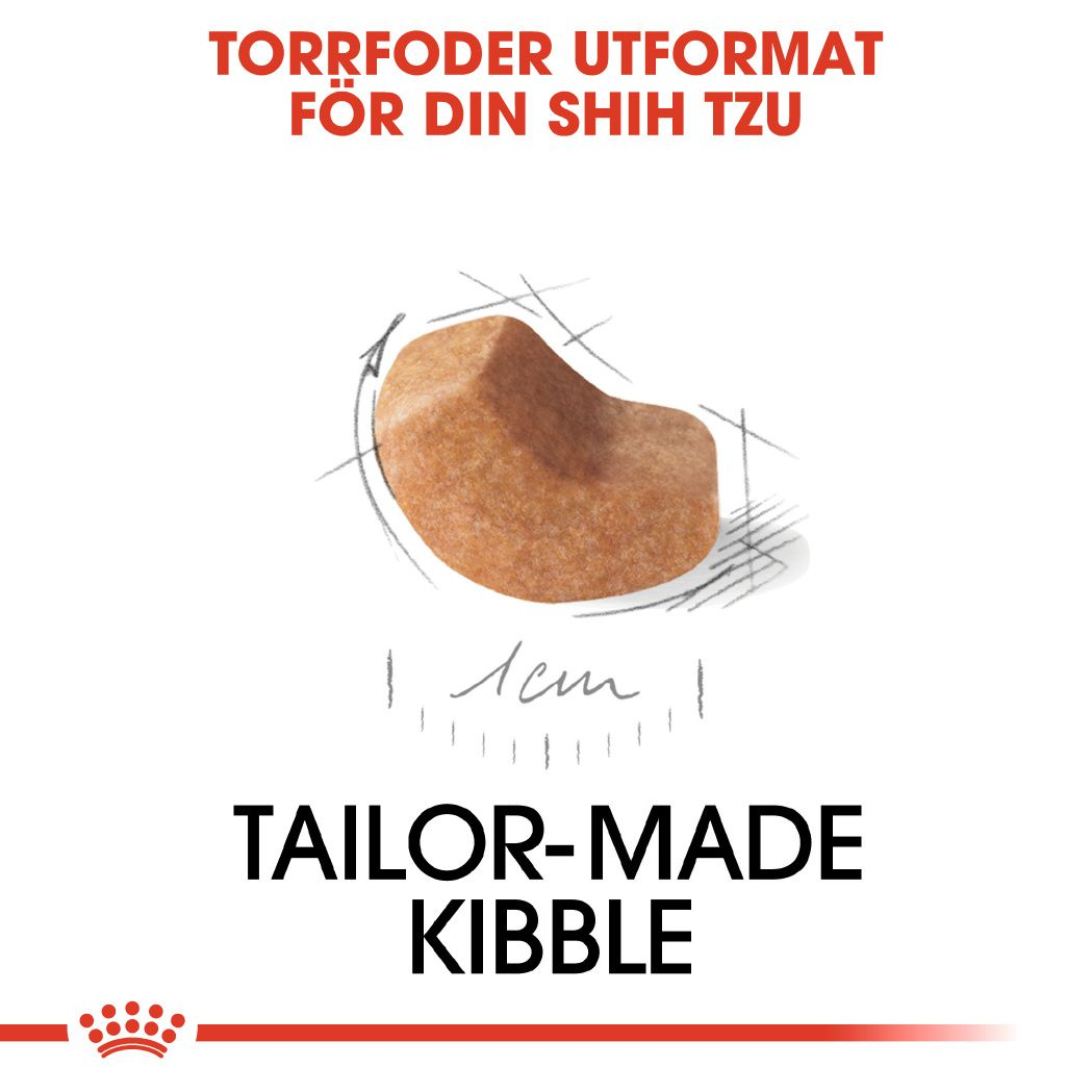 Tillväxtfasen är ett viktigt skede i din hunds liv. Det är en tid med stora förändringar, upptäckter och nya möten. Under denna viktiga period utvecklas din shih tzu-valps immunförsvar gradvis. Därför behöver den en kost som innehåller näringsämnen som stödjer hälsosam tillväxt och utveckling.Detta helfoder är lämpligt för shih tzu-valpar upp till 10 månaders ålder, och torrfodret är särskilt utvecklat med din valps alla näringsbehov i åtanke.Fodret bidrar till att främja valpens immunförsvar, särskilt tack vare sina antioxidanter, inklusive vitamin E.ROYAL CANIN® Shih Tzu Puppy innehåller också A-vitamin, Omega-3-fettsyrorna EPA och DPA, och är berikat med boragoolja för att stödja hudens barriärfunktion och bidra till att bibehålla en hälsosam hud och ge näring till pälsen. Dessutom innehåller Shih Tzu Puppy en kombination av näringsämnen med högkvalitativa protein och prebiotika för att stödja magtarmhälsan och hjälpa till att upprätthålla en hälsosam balans i tarmfloran, vilket också bidrar till en god avföringskvalitet.De exklusiva torrfoderbitarna är speciellt utformade för rasens korta och fyrkantiga nosparti, för att din Shih Tzu-valp enkelt ska kunna plocka upp sitt torrfoder och samtidigt uppmuntra din valp att tugga.